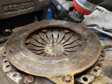 Anti éppen a Rulettastra kuplungolásával izzad, de azért annyi belefért, hogy küldjön egy-két fotót a kiszerelt, és nem mellesleg 400 ezret futott alkatrészekről. Itt a tárcsa, főleg a furatok környékén érdemes megnézni a kopófelület vastagságát. Épül be helyette az új, végre nemcsak akkor fog kiemelni, ha az egyes hengerig tapossuk a pedált.