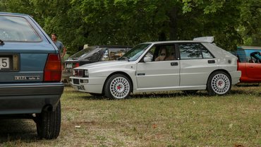 Pár lépéssel odébb három Lancia Delta álldogál és akkor állapítom meg, hogy mennyire jót tesz minden autónak a sárvédőszélesítés. A HF Integrale pontosan annak néz ki, ami: egy kompakt, amit belülről feszít szét a technika. 200 lóerő körüli 2,0 literes turbómotorja úgy tölti ki a rendelkezésre álló teret, mint a levegő és akkor még ott van alatta az összkerékhajtás is. A Turbo DS-en látszik, hogy sokküllős felnik és a szélesítések nélkül, sallangmentesen is mennyire működik a forma, aminek megrajzolásához valószínűleg Giorgetto Giugiaronak kizárólag vonalzót és ceruzát adtak a kezébe.