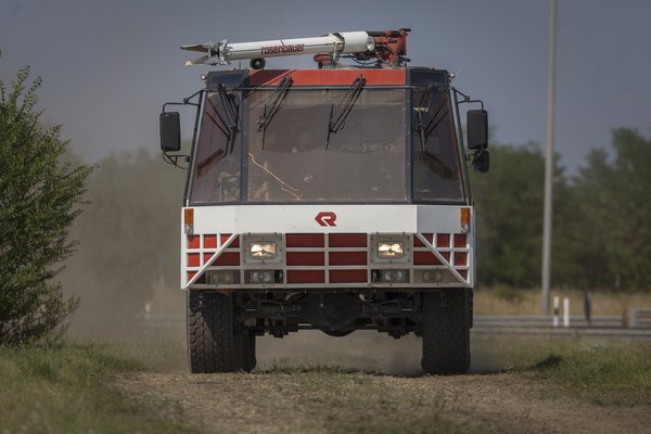 Éles váltás a Trabant után a Budapest Liszt Ferenc Nemzetközi Repülőtér csúcstűzoltója, a FOAM-10 néven futó összkerékmeghajtású Rosenbauer Panther 6×6. A Panther a repülőtéri tűzoltók Forma 1-es autója, a non plus ultra, nem véletlenül használják őket Szingapúrtól Londonon át Dubajig. A Pantherben 12 000 liter víz, 1500 liter hab és 250 kg por található és egy 9000 liter/perces szivattyú segítségével olt, különlegessége pedig a 16 méter hosszú oltókar, amelyen hőkamera is található és több mint 100 méteres hatótávolsággal bír. A 42 tonnás jármű kifejezetten repülőtéri használatra készült és az oltókar praktikumát is ebből a szemszögből kell nézni: a Panther képes fentről lefelé oltani egy emeletes óriásgépet, akár 80-100 méteres távolságból is. Nemcsak a hatótávolság megdöbbentő, hanem az is, hogy a 16 000 köbcentis Volvo Penta motor 0-ról 80 km/h sebességre nagyjából fél perc alatt gyorsítja fel a Panthert, ami bőven elég arra, hogy bármelyik tűzoltóbázisról indulva két perc alatt maximum 120 km/h-s sebességgel száguldva elérje a repülőtér bármely pontját és megkezdje az oltást. A tudásnak persze ára is van, a budapesti Panther több mint egymillió euróba kerül, de ez messze nem a legtöbb pénz, amit repülőtéri Rosenbauer tűzoltóért fizetni lehet, hiszen ott van a 8x8-as verzió is, amiből a Dubaji Nemzetközi Repülőtér nemrégiben egyszerre 22 darabot vásárolt. Emellett Dubajba, Berlinbe és Amsterdamba megérkeztek tesztelésre az első elektromos Rosenbauerek is, egy biztos, az akksipakk súlya jelen esetben nem releváns.