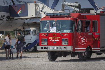 Órákig lehetne mesélni az egyes tűzoltóautók történetét, akárcsak a repülőtéri betegszállítás kulisszatitkait, rengeteg élményt adott ez a nap. Meglehetősen ritka az olyan hely, ahol egyszerre lehet elborzadni a régmúlt mentőautóinak a belterétől, a Panther vízsugara hűti az ember lányát, a kéklámpások felvonulását pedig egy Il–18-ról lehet nézni. Zárásként a forgatag képei mellé csak annyit mondok, hogy follow me, ez egy olyan világ, amit érdemes megismerni és nem lehet megunni. Mindenesetre van egy olyan sejtésem, hogy a kéklámpások következő találkozója előtt még azért ellátogatok Simbához és egyben rendkívül érdekfeszítő kérdéseimmel tesztelem az Aeropark dolgozói idegrendszerének végtelennek tűnő strapabíróképességét.