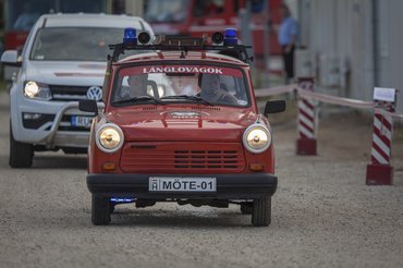 Még mielőtt elérnénk az igazi nagyágyúig, muszáj szót ejteni a Mezőcsát és Környéke Önkéntes Tűzoltó Egyesület (MÖTE) Trabantjáról, ami talán a nap egyik legnagyobb sztárja volt, szerintem nem volt ember, aki ne mosolygott volna, amikor meglátta. Én sem voltam kivétel, azonnal előjött a cincogó Mickey egér hang és a talán az illendőnél egy fokkal hangosabb jajjdecukiiíí felkiáltás, de nem lehetett mást tenni, a Trabi elképesztően mókásan nézett ki az óriási tűzoltóautók között megbújva a kigúvadó fehér szemeivel. És, hogy mi vesz rá valakit arra, hogy tűzoltó Trabit építsen? Az álmai és a barátai. A MÖTE ugyebár ahogyan sok másik önkéntes tűzoltó egyesület, nem dúskál a pénzben, szabadidőben és sokszor saját pénzből próbálják életben tartani a technikát, de szerettek volna egy Trabit, pénz viszont még erre sem volt. Aztán valaki elcsípett egy beszélgetést, amit a MÖTE tagjai az álom Trabant témájában folytattak és ez a bizonyos illető összefogott három barátjával, titokban vettek egy Trabantot, felújították és átalakították a jelenlegi állapotára. Ezt követően egy tűzoltó bálon ünnepélyes keretek között átadták az ajándékot. A MÖTE tagjai pedig azóta is büszkén viszik jeles alkalmakra, felvonulásokra Magyarország egyik legegyedibb (tiszteletbeli) tűzoltóautóját.