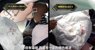 A Model Y vezetőoldali ajtaja kézzel nem volt nyitható, mert a hátrafelé mozduló zsanéroktól összefeszült. Karambol után csengő füllel, szédülve, sokkosan, zúzódásokkal átmászni egy másik ajtóhoz nem valami jó móka. Az A-oszlop (az első szélvédőoszlop lába) megrogyott és hátra mozdult, és több helyen megroppant a tetőív héja is. A küszöb felnyílt és meggyűrődött. Ami a legrosszabbul néz ki: a padlólemez és az aksi takarólemeze is hullámosra deformálódott, azaz tekeredett akkorát a karosszéria egésze, hogy mindent elhúzott. Mindezekkel együtt is sértetlen maradt az utascella, de nagy kérdés, hogy még 10 - 20 km/h esetén mit láttunk volna.