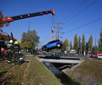 Az MTI adta ki ezeket a fotókat egy szombati ütközésről a fővárosból. Az elsőn azt látni, hogy egy törött Suzuki pihen a Rákos-patakban, de az már csak a leírásból és a galériából derül ki, hogy azután került oda, hogy összeütközött egy Forddal a Füredi utca és a Gvadányi utca kereszteződésében.