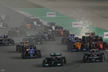 - Hamilton futamgyőzelmét innentől kezdve nem igazán fenyegette semmi, ráadásul a rajtnál sem tudtak fogást találni rajta a nála lágyabb gumikon rajtolók. A Mercedes tempója ezen a hétvégén kényelmesen beosztható előnyhöz juttatta, amit tökéletesen kézben tartott. Verstappen és Bottas nem sokáig voltak csatában egymással, mert Max azonnal elhúzott Valtteri mellett a rajtnál, és a 4. helyen fordult a 3. kanyarban, míg a finn a 11. helyre esett vissza. A Q2-ben elvérző Perez is elé került, ami alapjaiban változtatta meg a szombati időmérő után még akár sima Mercedes 1-2-nek kinéző futam dinamikáját.