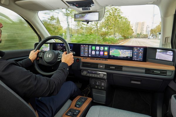 De még ez sem a vége. A jelenlegi csúcs a hat darab képernyő, amit a Honda E mutat fel. A három műszerfali érintőképernyő mellett kijelzőképet kell nézni a két oldalsó külső és a középső belső visszapillantó tükör helyett is. Ez aztán a képernyő hátán képernyő! Más kérdés, hogy mennyi az értelme. A külső tükrök kamerával és képernyővel kiváltása egyik irányból nézve nagy ötlet, mert nagy sebességnél a tükrök légellenállásnövelő hatása nem elhanyagolható. (Bár kérdés, hogy a megoldást szintén tartalmazó, az egykori berlini fallal vetekedő homlokfelületű Audi e-tron esetében mennyit számít ez valójában.) Ráadásul olyan területeket is képes megmutatni, ahova a tükör már nem lát, vagyis a holtteret is csökkenti. Ugyanakkor használatát nagyon nem könnyű megszokni, mert nem oda kell nézni, mint ahol a tükör lenni szokott, és a kijelzők képe sem nem olyan éles, sem nem olyan kontrasztos, mint egy jó tüköré. Ez utóbbi a probléma a hátsó kamera képét használó belső visszapillantó tükörrel is. A képe a látómező nagyságát leszámítva inkább zavaró, mint segítő. Ráadásul ez nem egyedi, nem csak a Honda E-ben szereztünk ilyen tapasztalatokat, hanem az elektronikus külső tükörrel megáldott Lexus ES300h-ban és Audi e-tron-ban, valamint az elektronikus belső tükörrel is kapható Lexus NX-ben is.