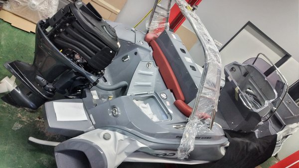 A külmotorokon jellemzően a csiga közepén, mint egy csövön érkezik a motorból a vízhűtéses kipufogócsonkból a kipufogógáz, ennyi az összes zajcsillapítás, civil használatra nem is igazán árulnak más motort, a zajkomfort is lényeges tervezési tényező. Verseny felhasználásra a zaj eléggé sokadrangú szempont (de bizonyos mértékben szempont ott is), azok a csigák nagyon máshogy néznek ki, a közepe nem lukas, ott a hatékonyság az elsődleges feladat, azért nem is a csigán keresztül megy ki a kipufogó. Szólóban felszerelt motoroknál alapértelmezettként jobbos csigák vannak, azaz hátulról nézve a csiga az óramutató járásával megegyező irányba forog. Párban felszerelt motornál az egyik csiga jobbos, a másik balos a nyomatékkiegyenlítés miatt, gázadásra nem akarja a motor bedönteni a testet, illetve szeretné, csak mivel a két csiga fordítva forog, az ébredő erők kioltják egymást.