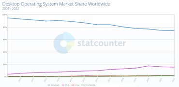 - A Google-nek nincs egy népszerű, asztali operációs rendszere. Bő 20 év alatt az Apple-féle MacOS egy megkerülhetetlen rendszerré fejlődött, az angolszász területeken sok cégnél és munkakörben a Windows-zal szemben elsöprő előnye van, de a világ minden táján gyorsan terjed és nagy rajongótábort tud magáénak, ráadásul még így sem harap ki többet a piac 20%-ánál, miközben a Windows stabilan 70% fölött van, mindig.