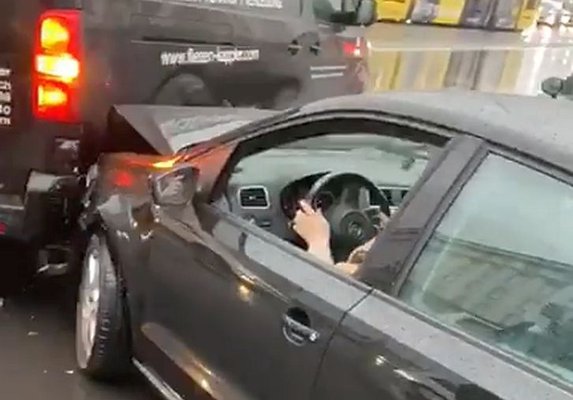 A történetbe akkor kapcsolódunk be, amikor a baj már megtörtént. A volkswagenes nő belerongyolt egy furgonba, eddig semmi rendkívüli. Azonban egyáltalán nem tervezett kiszállni a kocsiból, rendezni a helyzetet. Bár felhívják rá a figyelmét, hogy talán meg kéne várni a rendőrséget, de erre csak felbőszül, és még vagy kétszer nekimegy a furgonnak, majd elhajtana. Csakhogy az se sikerül olyan jól. Végül inkább elveszik tőle a slusszkulcsot.