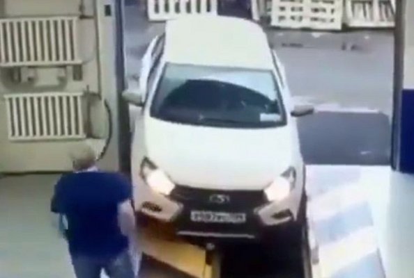Ehelyett viszont a Lada bal eleje belebólint az aknába, de itt nem ért véget a sztori. Miközben próbál kimenekülni, lerendezi az autó jobb oldalát, letöri a tükröt. Aztán az aknába is visszahuppan.
