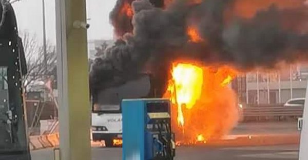 Frissítés: a Havaria-Info információi szerint a tűzoltók időközben eloltották a buszt, és már az utómunkálatokat végzik. Szerencsére a járműről időben le tudtak szállni az utasok. Egyébként a busz egy 2006-os gyártású Alfa Busz Regio Volvo B12B alvázon, amely menetrend szerint közlekedett. A tűz oka még nem ismert.
