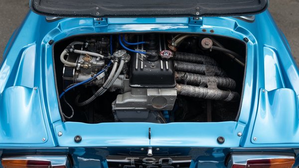 Klasszikus kék színe mellé az utastérben fekete steppelt bőr kárpitozás van és sokpontos övek a korabeli sportüléseken. Az 1600 SX dupla Weber karburátorokkal több mint 150 lóerős, ami eltörpül a mai A110-es közel 300 lova mellett, de a 700 és 800 kiló közötti bódéhoz nem is feltétlenül kell több egy lelkes négyhengeresnél. A 77 595 kilométerrel szintén újszerű A110-est Concours of Elegance eseményeken és Goodwoodban is láthatta a közönség.