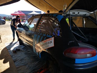 Szerelnünk csak ütközés miatt kellett. Egyszer körülbelül 50-nel belénk csattantak úgy, hogy a mezőny egy másik baleset miatt, velünk együtt állt, csak ez nem látszott a portól: a fél fenéklemezt vissza kellett kalapálnunk és valahogy lámpát gyártanunk az éjszakára, órákkal később pedig az autónk bal elejét kapta el egy versenytárs olyan intenzitással, hogy a Colt zárhídja meghajlott, a hűtőradiátor kimozdult a helyéről és letörte a csonkot. Ja igen, mire ezt érdemben észleltük, biztosan megtett vagy 10 kört szintén padlógázon. Semmi baja nem lett.