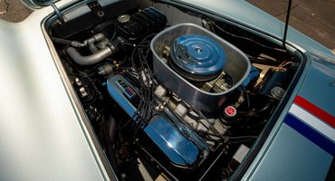 Nem csak felújították a 427 köbhüvelykes V8-ast, de az 500 lóerős gépet ma is versenyképessé tették a mai biztonsági előírásoknak megfelelő alkatrészekkel. Fekete bőr ülésein kétpontos öv van és a fakormány is múltidéző, szóval tökéletesen hozza a nyers gépélményt.