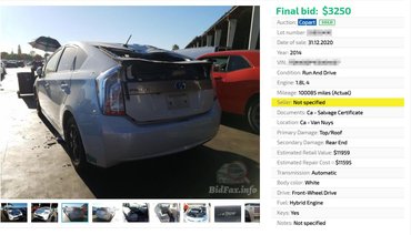 Mivel több Amerikában forgalomba helyezett, majd Európába áthozott autót volt szerencsém vizsgálni, így tudtam, hogy egy egyszerű alvázszám alapú INGYENES Google kereséssel messzire juthatok. Így is lett, még a helyszínen rákerestem az alvázszámra, mert furdalt a kíváncsiság. Elém tárult az en.bidfax.info oldal, ami biztosítási kárigényeket tart nyilván. Csodaszép képekkel illusztrálták, hogy valami marha nagy dolog esett/dőlt a Toyota tetejére. A feltüntetett adatokból még az is kiderül, hogy az autó becsült értéke 11 959 dollár, a becsült javítási ár pedig 11 595 dollár. Igen, 364 dollár híján az autó értékét rá kéne költeni a javításra. Ezt hívják gazdasági totálkárnak.