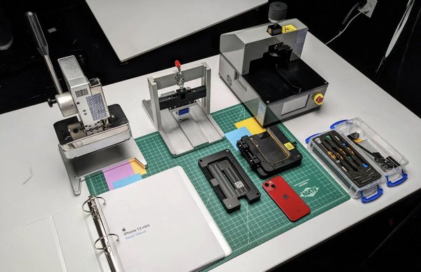 Az Apple a 30 grammos akkumulátor cseréjéhez két nagy bőröndnyi szerszámot küldött, 36 kilós kiszerelésben. A javítókészletben természetesen nem csak három darab csavarhúzó volt, hanem szinte minden profi eszköz ahhoz, hogy egy ilyen javítást el lehessen végezni. Laboratóriumi pontosságú hevítődoboz, amivel a kijelző ragasztóját lehet hibátlanul eltávolítani és kiemelni a panelt a helyéről, de van eszköz a csatlakozók szétszedésére, és az új akku visszanyomására is egy elég komoly rugós préssel. Ezen felül természetesen egy nagyon alapos és részletes leírást is küldtek lépésről lépésre, ami bemutatja, hogy zajlik a folyamat.