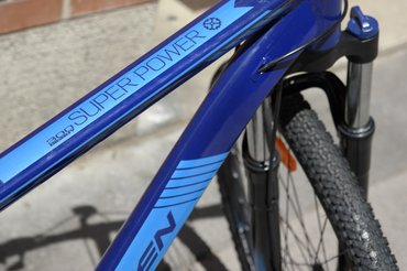 Ez a BigBoy 300 egyébként már szemre is pofás, és ami sokkal fontosabb, ez egy alumínium váz, ami könnyű, merev és a vázban futó bovdenjei révén letisztult. 29 colos felnijei az “átgördülni mindenen” filozófiát testesítik meg a szerényebb, 27,5 colos kerekű gépekkel szemben, a gyárilag közepes, 1,95 col széles kerekeit pedig vékonyabbra és vastagabbra egyaránt lehet cserélni, van bőven hely a vázban. Van benne egy rövid rugóúttal rendelkező acél teleszkóp, ami ráadásul teljesen fixre is zárható, hogy a heves tekerések során ne nyelje el energiáinkat a felesleges rugózással, de rossz úton azért mindenképp érdemes hagyni mozogni.