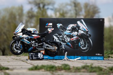 Komolyságot sugall már a fekete hátteres doboz, amin hatásos fotó és színben passzoló kockák grafikája üzeni, hogy ez itt a felső polcos Lego Technic készlet. Mert az 1949 óta műanyag játékokat gyártó dán vállalat rájött, hogy messze nem csak gyerekek körében népszerű elfoglaltság kockákat és más elemeket összepattintani, hanem a felnőttek is szeretik az ilyesmit. Autókból már régóta vannak egyértelműen exkluzívabb készletek, mint a Porsche 911 GT3 RS vagy a frissen bejelentett Ferrari Daytona SP3, de minden idők legösszetettebb motoros Legoja csak az M 1000 RR-rel érkezett meg.