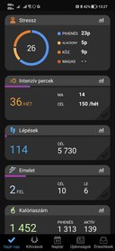 A hét végére esett a Parkoló Parádé, amin a telefonommal szoktam mérni, hogy rendezvényszervezőként mennyit gyalogolok. Jellemzően 22-25 ezer lépés szokott kijönni, szóval annyira nem lepődtem meg, hogy az óra már délelőtt 11 körül üdvözölte a gyári beállítás szerinti 7300 lépés elérését. Az már inkább meglepő volt, hogy az este 33 ezer lépésnél végződött, szóval alaposan megvolt a lábnap. A pulzus jellemzően 120 körül mozgott, így a statisztikában a vasárnap egy masszív kiugrás volt minden téren. Mivel sok rakodás, építés, szerelés van egy ilyen alkalommal, kissé féltettem az órát, de szerencsére annak ellenére, hogy sikerült rutintalanul odacsapkodni párszor, ennek nyoma se volt rajta, szóval bírja a hajtást. A hagyományos kvarcóra-jellegű kijelző miatt sejtettem, hogy nem fogyaszt sokat, és ez így is volt. Teljesen feltöltve, a telefonnal összelőve 11 napot írt ki, Antit megkérdezve az ő Apple Watch-a maximum kettőt tud produkálni, így azért elég jól hangzik. Nekem amúgy is az állandó töltögetés a halálom, itt úgy tűnik, ezt megugrottuk.