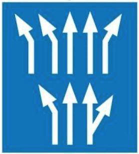 A „Besorolás rendjét jelző tábla” egyes forgalmi sávokat jelképező nyilainak megszakításával - a sáv szabályozásával megegyező -