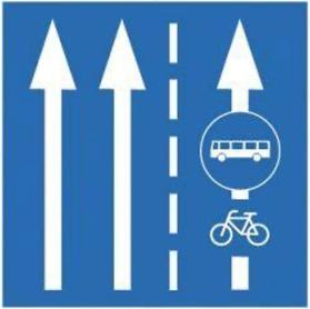 A leggyakoribb esetben a busz- és kerékpársávokat jelzik előre, jóval hamarabb és megbízhatóbban a lekopott felfestéseknél (ez például itt egy közös busz- és kerékpársáv):
