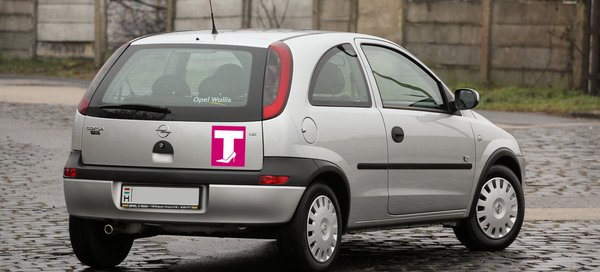 Van ez a népszerű matrica, rózsaszín alapon tűsarkús T betű. Igen sokat látni belőle az utakon. Meglepő, milyen sokan hiszik azt, hogy előnyt kapnak tőle, miközben maximum lesajnáló mosolyokra, csikorgó gumis jobbról előzésekre, és hülye sztereotípiák bebetonozására jó.
