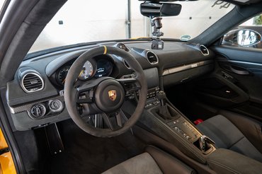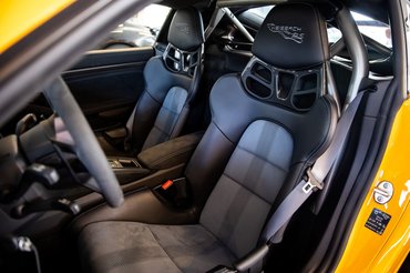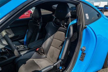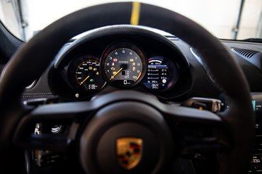 A 911 GT3 viszont tényleg megvett kilóra, le sem tudom tagadni. Itt már tudatosan nem akarnak annyira elszigetelni külvilágtól, mint a többi 911-ben, olyan kagylóülésbe huppantam be, hogy szinte már nyúltam volna magam mögé jobbra is a négypontos övért, ha nem láttam volna előre, hogy ebben még sima hárompontos van, és persze az is tiszta lett, hogy a fordulatszámmérőt sem véletlenül skálázták 10 ezerig.