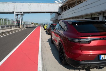 Két csoportra voltunk osztva, elsőként a hétköznapi autókkal, később a kétajtósokkal mehettünk – persze ez a hivatalos állítás, valójában ezeket mindenki nem igazi és igazi Porscheként választja el fejben, én mindenesetre örültem is neki, hogy az élesebb modellekkel csak akkor ismerkedtem meg, mire ismét felelevenítettem a belülről évek óta nem látott pályát. A kétféle Cayenne nagyon érdekes tapasztalás volt: a Turbo GT – ami a Cayenne-családból először kapott GT jelzőt – egy hihetetlenül agresszív, nyers autó, bődületes, kipufogóval erősen hátrafelé hangolt V8-robajjal, és a hozzá tartozó, érezhetően soha véget nem érő gyorsulásélménnyel. 631 lóerő, precíz fék és remek kormányozhatóság, szerintem simán le tudna tagadni valamennyit a 2,2 tonnás önsúlyából, megdöbbentem, mit elbír a futóműve.