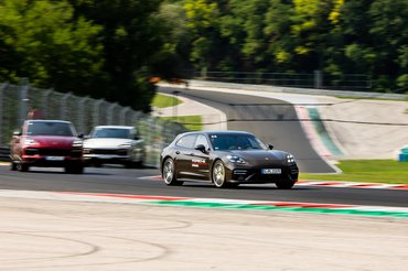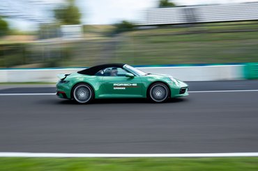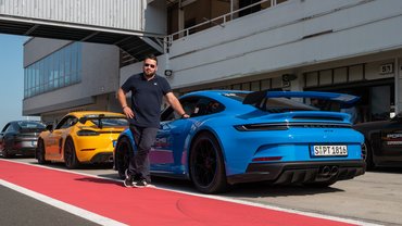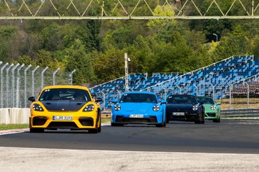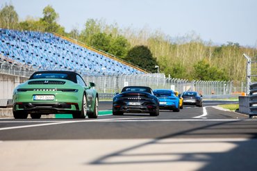 Hogy kellőképpen az utálat tárgya legyek, felsorolom, miket vezettem: Cayenne Turbo GT, Cayenne e-Hybrid, Panamera e-Hybrid, Taycan, 911 Carrera 4, 911 Turbo S, 911 GT3, és 718 Cayman GT4 RS. Instruktornak szerencsésen megkaptuk Walter Csabit, és a Hungaroringnek is a teljes, bójáktól mentes változatán mehettünk körbe.