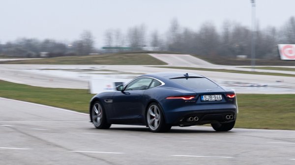 Csakhogy nem számoltak azzal, hogy nekem nem sikerül összhangba kerülnöm a Jaguar – ha jól emlékszem F-Type – menetstabilizáló rendszerével, amit a biztonságra hivatkozva nem volt szabad kikapcsolni. Kettővel a felvezető autó után következtem a konvojban, és nyilván próbáltam tartani a lépést a mezőny elejével. Azt vettem azonban észre, hogy hiába nyomom meg a gázpedált a kanyarból kijövet, az ESP leszabályoz, és nem enged gyorsítani. Nosza, gondoltam, kitolok veled, és utána már a kanyar közepén ráálltam a gázpedálra. Hátha így előbb bekapcsolja a rakétáit a Jaguar.