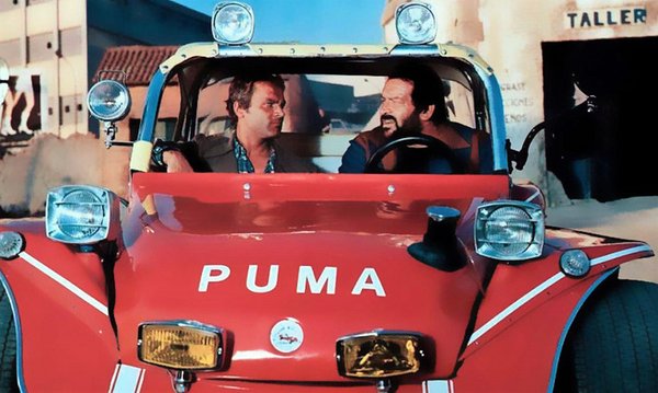 Ha valaki egy Bud Spencer filmet sem látott, akkor is tudja, hogy a Különben dühbe jövünk főszereplője a két színész mellett a piros buggy. A sztori szerint az autóverseny tétje éppen ez a kocsi, amivel amúgy versenyeznek is. És bár holtversenyben megnyerik az autót, mire eldöntik, hogy kié legyen, a buggy megsemmisül. A kocsi a kit carokat gyártó Puma cég terméke volt, 1,3-as motorja 130 km-es sebességig vitte.