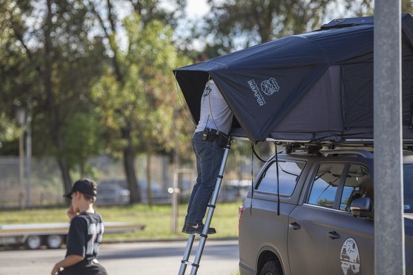 Közben becsúszott a túrázás meg a tetősátor, ami adta magát, hogy a Grand Mussón díszelegjen, így biztos nem lesz gond a teherbírással. Azért elsőnek egyeztettem a hátsó doboz forgalmazójával (Maxliner), hogy tényleg így van-e, Rádi Laci megnyugtatott, hogy nem lesz gond. Már évek óta hurcolok különböző sátrakat a tetőn (55-75 kg közöttieket), és sose volt probléma belőle, csak azt nem szabad elfelejteni, hogy így már csak igen csörömpölősen férek be a szerkesztőségi mélygarázsba. Ahol jelenleg a raktáram is van, így ez néha okoz némi logisztikai kihívást, de én választottam ezt a megoldást.