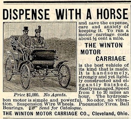 Amiért külön kitértem Benzre és az első autóra, az nem más, mint az első autóreklám körüli vita. A legtöbben azt mondják, hogy a Winton hirdetése volt az első, azonban mások az Amerikai Egyesült Államok és egyben a világ valódi, első autóhirdetését az első amerikai autóipari magazin, a The Horseless Age 1895 novemberi megjelenéséhez kötik. Az első szám legelején látható a Duryea Motor Wagon Co., New England úttörő autógyártójának hirdetése, 1895 pedig jóval 1898 előtt volt. Ezt a vitát nem én fogom eldönteni, de az biztos, hogy a The Horseless Age-et 1907-ben átnevezték The Automobile-ra, majd 1917-től Automotive Industries néven jelent meg és jelenik meg a mai napig.