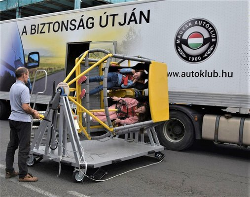 De nem csak villogunk, aki kicsit kézzelfoghatóbb élményt kíván, annak az Autóklub kamionja jön ki. Elvileg mindent is kihoznak, így kipróbálhatod, milyen felborulni vagy ütközni. Utóbbinál fizikailag érezheted, mennyire fontos, hogy be legyél kötve! Korábban írtuk, hogy hamarosan már szimulátoron is lehet majd jogsit szerezni, az Autóklub kamionjában ezt a szimulátorba is beülhetsz!