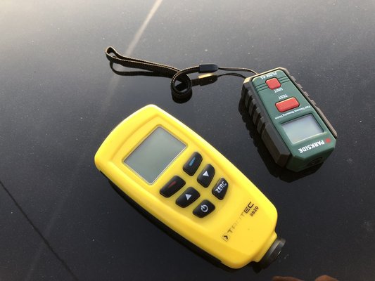Tény, hogy kalibrált üzemmódokban elvileg sokkal pontosabb a műszer (+/- 0,05 mm tűrés), „Auto” módban viszont alumíniumnál ehhez még hozzájön a mért érték 2 százaléka, vaslemeznél meg a mért érték 10 százaléka. Ez azt jelenti, hogy tipikusan 0,06-0,07 mm-t tévedhet oda-vissza (hiszen általában vaslemezből készült autókat vizsgálunk, amiken jó esetben 1-2 réteg festék van). Másképpen: 0,06-0,07 mm az 60-70 mikron. Ez mondjuk elég rosszul hangzik, ha tudjuk, hogy egy gyári bevonatréteg valahol 80-120 mikron közt van. De gyanítom, ennyit azért csak akkor hord félre, ha több dolog is összefog ellenünk. Mint mondtam, a kalibráló lemezt nagyjából jól mérte, ahány általam ismert festékvastagságú autóra rámértem, azokon is jó értékeket mondott.