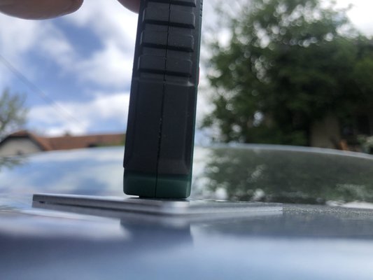 Ha nem lett volna a teljesen érthetetlenül össze-vissza mérése a piros BMW-n, azt mondanám, hogy általános tájékozódásra, nagy disznóságok leleplezésére jó lehet ez a kis műszer. De ez a bénázás elbizonytalanított. Az sem segített, hogy amikor később kipróbáltam a kalibrálási funkciót, teljesen-össze-vissza kezdett mutatni. Automata módban a korábban jól (1,72 körüli értékre) mért kalibrációs lapot már 1,66 környékére mérte, pedig az ugye 1,76 +/-0,02 mm vastag. Ráadásul ugye erre nem is kellene hatással legyen a kalibráció. De ha direktben, NFe módban mértem a műszerhez kapott alumínium lapot, akkor csak egyszerűen semmit nem volt hajlandó mérni. Se önmagában, se a kalibrációs lappal, se más rétegvastagsággal. Vaslemezzel egy kicsit jobb volt a helyzet: igaz, teljesen fals értékeket írt, de legalább valamit mért. Mondjuk a vasra kalibrálás után már megint 1,72 körüli értékeket mért az alulapon...