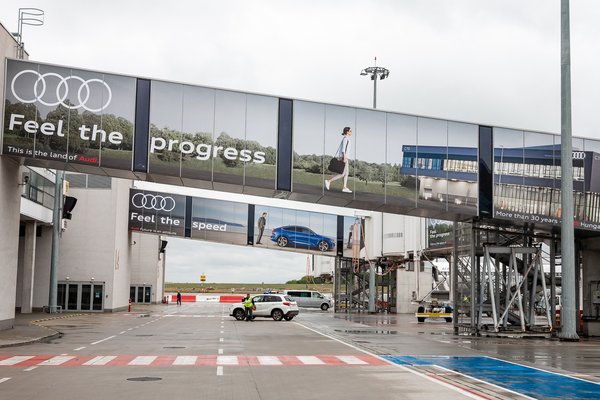 Arról van szó, hogy a repülőgépeket a terminállal összekötő, zárt folyosó – vagyis utashíd – külsejére és belsejébe kellett dekorációt tervezniük. A nem túl szerény, The land of Audi, vagyis az Audi földje szlogen köré kellett építkezni, ami a gyakorlatban azt jelenti, hogy az Audi már 30 éve jelen van Magyarországon a győri gyár révén.