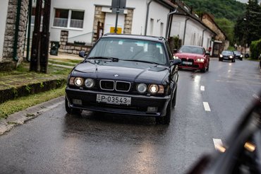 Az M5 Touringgal magasra tettem a lécet, ez az E34-ek szent grálja. Bár 530i és 540i néven V8-ast is lehetett belőle kapni, a Motorsport GmbH-nál tudták, hogy ebbe a sportos BMW-be az M635 CSi sorhatosa jobban illik. Ez már nem a 3,5 literes S38B35, és nem is a 3,6 literes S38B36, hanem az abból továbbfejlesztett, 3,8 literes, 340 lóerős S38B38. Kereken 400 Nm nyomatékát a hátsó kerekekre küldi, elektronika nélkül. A tárgyak és a testek épségéről idén Walterné Dancsó Adrienn autóversenyző gondoskodott. Azért nem csak lassan, a megfelelő pillanatban gyorsan menni is hagyta a csapatot.