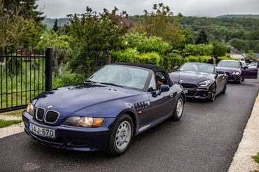 Ő Z3-asra, én Cápa 5-ösre tippeltem, de szerencsére András örömét sem rontottuk el, meg tudott lepni minket, és learathatta azt a mosoly adagot, ami erőt ad a következő rendezvény megszervezéséhez. Nem ritkán a BMW gyűjteményéből utaztat ide nagyértékű veteránokat, youngtimereket, szerencsére idén a fanatikusnak bátran nevezhető Bavarian Classics volt a dílere, mert ilyen monszunszerű esőben a kamionból sem vehette volna ki az autókat. Azért kedvezett nekünk az időjárás, mire Balatonfüredre értünk, már csak csöpögött az eső, ebéd után indulhattunk is. De miket is vezethettünk pontosan?