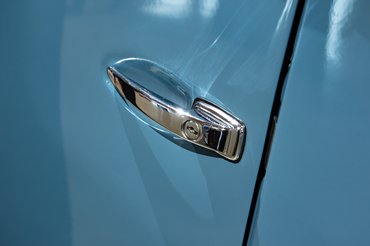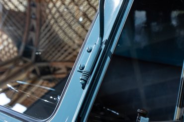 Sofie-t, tehát ezt a konkrét T1-et 1950 augusztus 8-án szerelték össze, 20-1880 alvázszámmal, L31 kódú galambkék színben. Egy teljesen hagyományos áruszállító, ablaktalan fémfal választja el a rakteret az egybeépített pados, három embert befogadni képes utastértől, és nyilván hátul sincs rajta ablak, helyette ott a korai T1-ekre jellemző hatalmas motorháztető, amivel markáns kontrasztot képez az apró lámpa, indexet hiába is keresnél: ez még hagyományos, karos irányjelzőt kapott.