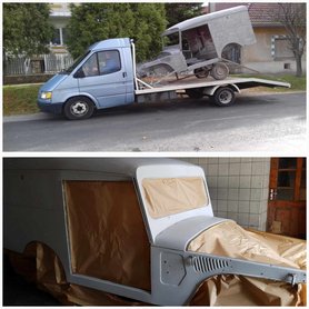 Hat éve hirtelen felindulásból vásárolta Szerbiában. Hazahozta. Itthon teljesen szét lett szedve. Minden eleme, darabokra. Leemelték a karosszériát az alvázról, s külön-külön restaurálták.