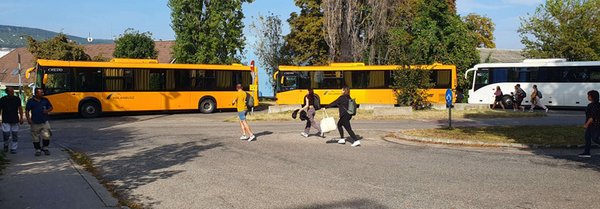 A buszunk végül körülbelül 10 perc késéssel érkezett meg Tatabányára, ahol jobb híján a parkoló autók között rakta le az utasokat. A megállókat elfoglalta öt darab IC-pótló túrabusz, a szervező/tájékozató személyzet két tagja pedig azt próbálta megfejteni, hogy vajon a megálló kicsi, vagy a buszok vannak túl sokan.