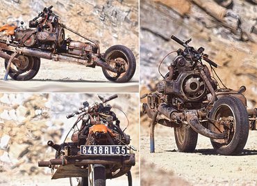 Itt jött a meghökkentő fordulat a történetben, ugyanis Leray ahelyett, hogy visszasétált volna egy közeli településre, az az ötlete támadt, hogy a Citroën 2CV-ből motorkerékpárt épít. Visszaemlékezése szerint erre a mutatványra három napot szánt, az átépítés azonban 12 napig tartott. Tehát a francia elektroműszerész mindenféle komoly szerszám nélkül teljesen darabokra szedte a Kacsát, és motorkerékpárt épített belőle. Tette ezt úgy, hogy a 2CV alvázát szétvágta, annak a közepére helyezte a motort, csinált egy kezdetleges kormányt, a lökhárítóból pedig ülést. A két megmaradt kereket kifordítva, a lengőkarral együtt felszerelte az alvázra. A gázt és a kuplungot is kézzel lehetett működtetni, fék viszont egyáltalán nem volt a Kacsamotoron. A jármű hajtása borzasztó egyszerűen volt megoldva. A fékdobot Leray rászerelte a kihajtásra, amelynek segítségével dörzshajtást tudott beépíteni a hátsó kerékhez. Ezzel azonban az volt a gond, hogy így csak tolatva lehetett volna közlekedni a motorral. Viszont a 200 kilós jármű hátrameneti fokozatban már tudott előre is haladni. Ezzel a megoldással viszont az volt a baj, hogy így a Kacsamotor alig érte el a 20 km/h-s sebességet. Ehhez természetesen a másik oldali kihajtást blokkolni kellett, amit egy vastag vaslemez meghajlításával és rögzítésével oldott meg. Végül felszerelte a Citroën rendszámtábláját a motor hátuljára, nehogy valakinek feltűnjön, hogy nem épp rendeltetésszerűen használja az autóját. Végül a majd kéthetes munka meghozta a gyümölcsét, Leray a megmaradt másfél liter vizével felszállt a Kacsamotorra, majd útnak indult a végtelen sivatagban.