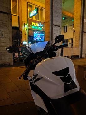 Jogos a kérdés, hogy ki az a hülye, aki pont itt tartja utcán a motorját?! Hát az, aki itt lakik - jó pár motor van a környéken - és rájött, hogy mindennapos használat mellett a belső udvarokba elég kellemetlen művelet betolni a szettet.