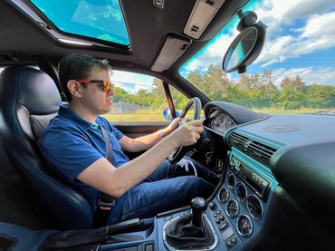 Már a beszállásnál elkezd hevesen dobogni a szívünk, amint beszippantjuk az illatait, már tudjuk, hogy végünk van, és amikor elfordítjuk a kulcsot, a gázra lépve legszívesebben úgy ordítanánk, mint Lali, az Üvegtigrisben, miután kölcsönvette a Bentley-t. Tökéletesen ülök, jól kilátok, még kibillenthető üvegtető is van! A hidraulikus szervókormányon minden éppen annyira jön át a kerekek felől, és a váltó is úgy mozog, hogy ideálisnak érezzük, az erő meg pont annyira eltúlzott, hogy a lámpánál is fülig ért a szám. Ez a vigyor azóta sem kopott le az arcomról. Kéne. Nagyon.