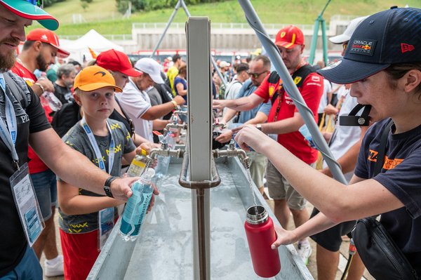 Szerencsére a szurkolói zónában kihelyezett kutaknál mindneki ingyen megtöltheti a kulacsait.