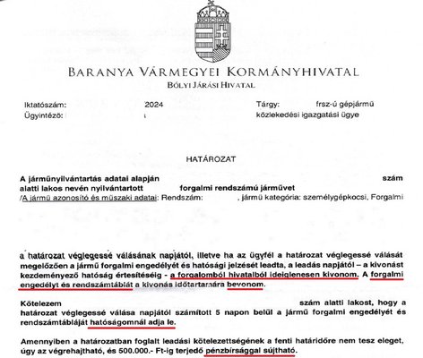 Bálint utólag már sokkal nehezebben tudott reklamálni, a kormányhivatal ugyanis köteles megindítani a kivonási eljárást, ha a rendőrség azt kéri. Olvasónk érezte, hogy egyedül nem lesz esélye kiegyenesíteni ezt a kanyart, ügyvédhez fordult inkább. A jogi képviselő ugyanazt a választ kapta első körben a kormányivataltól. Minden a jogszabályi előírásoknak megfelelően zajlott.
