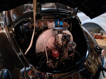 Az első változatban ez 795 cm³ lökettérfogatból 19,6 lóerőt tudott kipréselni – kevés volt. 1936. szeptember 24-én a Porschénak dolgozó Franz Xaver Reimspiess (1900-1979) megrajzolta a VW védjegyet, amit lényegében ma is használnak. Négyhengeres boxermotorjának koncepciója pedig egyetlen éjszaka leforgása alatt született meg tőle, 100 birodalmi márka bónusz ellenében lett kész. 48 órával később pedig teljesen összeállt, minden alapvető funkciójában – majd ugye módosítgatva gyártották, sokáig.