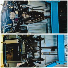 A futómű is teljesen szét lett szedve. A csapágyakat, szimeringeket cserélni kellett. A rugókat is, azokat be is mérettem, hogy egyformák legyenek. Természetesen újak a rugótányérok alatt a gumipogácsák is, s a lökésgátlók is újak.