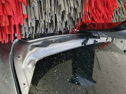 Az anyagi kár jelentősnek bizonyult, a forgó kefék magukkal ragadták a hátsó ajtó teljes felső (műanyag) burkolatát, spoilerrel együtt. Érteni azonban senki sem értette, miként sikerült ezt így összehozni, a kefék nem vákuummal dolgoznak, az elem pedig egyáltalán nem állt ki a karosszéria síkjából, és még csak nem is utólagos kiegészítő vagy gyári extra volt, hanem a karosszéria szerves része.