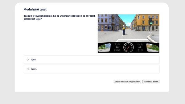 Még élvezetes is előhívogatni a lenyíló ablakokat, és lépésről lépésre képbe kerülni az egyes közlekedési helyzetekben releváns szabályokkal, ami átláthatóbbá teszi az egészet, és segít a megértésben. Én próbaként csak egy meghatározott egységet, a főútvonalra, illetve a rendőri karjelzésekre vonatkozó fejezetet ismételtem át, utóbbi a mindennapi közlekedésben az egyik legritkábban használt része a szabályrendszernek. Érdekes volt viszontlátni a részleteket, én ilyen helyzetben a józan eszem meglévő darabkáit használom, és nem tipródok rajta sokat, viszont azok a kollégák, akik nem ismételték át a tananyagot, többen is a pokolba kívánják ezeket a helyzeteket.